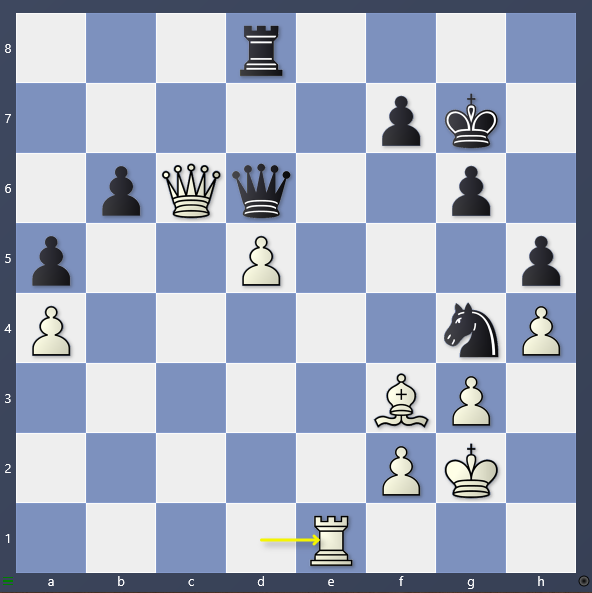 Après 28.Te1 Db4 29.Dc1, je me suis encore fait une belle frayeur : j’avais la main sur la Ta8 pour jouer 29…Te8??.