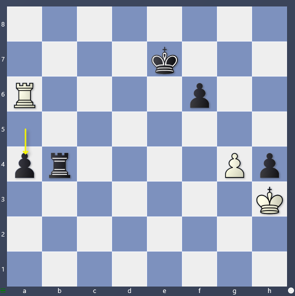 J’avais compris qu’ici, 55.Ta7+! était le seul coup pour annuler, puisqu’après 55…Rd6 56.Ta6+ Re5, les blancs peuvent tranquillement prendre en h4, la position malheureuse du Roi en e5 empêchant 57…f5? 58.Ta5+.