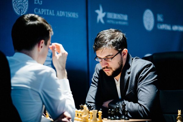 Quand j’aborde la dernière ronde, je sais que si je veux avoir une chance de rattraper Carlsen au classement du Grand Chess Tour, il me faudra très certainement battre Nepo avec les noirs. Je n’étais pas non plus certain de ce que seraient les intentions de mon adversaire. Allait-il forcer la nulle, au risque de se laisser rattraper au classement du tournoi par Caruana ? Ou allait-il essayer de garder son destin entre les mains en jouant pour le gain ? Il a finalement opté pour la première solution et je ne lui jette pas la pierre car au vu de son score très négatif contre moi, il a pris une décision que je comprends, et que j’aurais sans doute prise également moi-même dans sa situation. C’est le genre de choix que le cœur n’approuve pas, mais que la tête recommande chaudement !